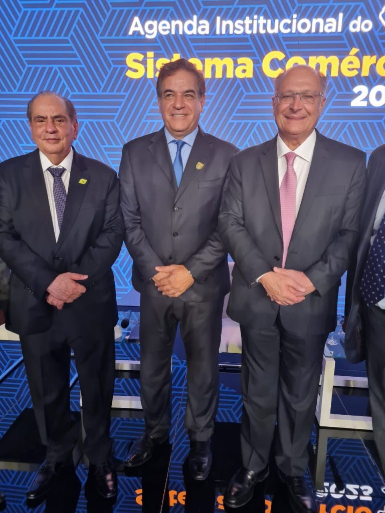 Na terça-feira (14), no Centro Internacional de Convenções do Brasil (CICB) em Brasília, aconteceu o Agenda Institucional do Sistema Comércio 2023, promovido pela Confederação Nacional do Comércio de Bens, Serviços e Turismo (CNC) onde o presidente do Sistema CNC-Sesc-Senac, José Roberto Tadros apresentou o documento “Propostas e recomendações do Sistema Comércio para desenvolvimento do País” ao vice-presidente da República e ministro do Ministério do Desenvolvimento, Indústria, Comércio e Serviços, Geraldo Alckmin; ao presidente da Câmara dos Deputados, Arthur Lira, e ao presidente do Senado, Rodrigo Pacheco. Na ocasião, também foi entregue aos convidados pelo presidente do Sistema Fecomércio MG, Sesc e Senac em Minas, Nadim Donato e os demais presidentes das federações dos outros estados, a “Agenda Estadual do Comércio de Bens, Serviços e Turismo” com Propostas e recomendações do Sistema Comércio para seus respectivos Estados e Distrito Federal, além dos documentos dos segmentos de Comércio, Serviços e Turismo. Mais de 170 parlamentares estiveram presentes, além dos presidentes de todas as Fecomércios, e das Federações nacionais.